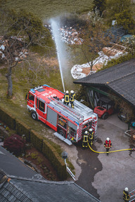 Die Kameradinnen und Kameraden des Löschzugs würdigten Werners Einsatz mit einer Überraschung. Zu seinem letzten aktiven Dienst holte man ihn mit allen Fahrzeugen, natürlich auch optisch und akustisch, an seinem Wohnsitz ab.